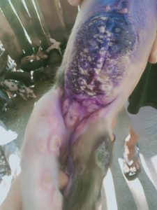 *Namumula ang mukha, mula sa maliit na sugat o bahagi ng katawan na may sugat.